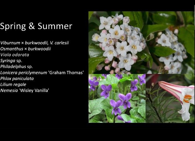 On a dull April afternoon Emma Desmier gave an interesting zoom talk to EAGG members and friends which certainly lived up to its title. Doing a talk without the essential element of scent was a challenge for Emma but she rose to the occasion and her descriptions were evocative and her enthusiasm for her subject shone through.